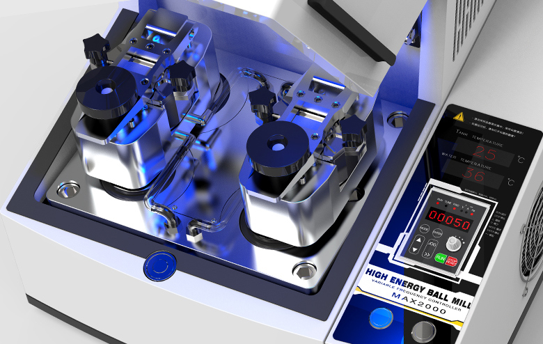 超高能球磨仪MAX2000是一款实验室桌面式纳米级研磨设备,放置两个125ml或以下容积的球磨罐使用,2000转/分钟的高速圆周运动中产生巨大的能量使样品能够快速的粉碎、研磨或者混合,出样具有良好的一致性和重复性;配备内、外两用的连续水冷循环散热降温系统和温度监测系统,仪器采用变频控制可实现定时、连续和间歇、正反交替研磨等多种功能,具有过载保护功能和电磁锁自动翻盖;